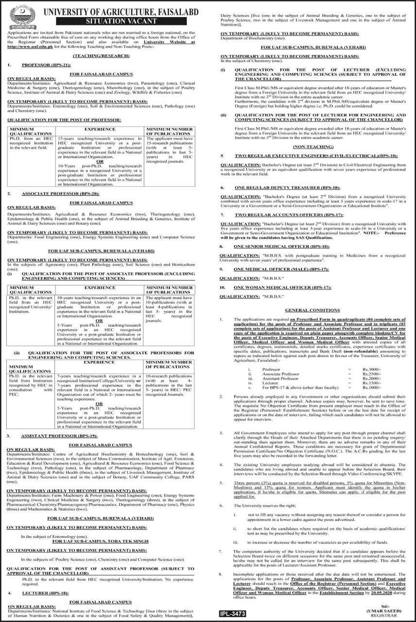 University of agriculture faisalabad. The university of agriculture faisalabad has advertised posts for medical officer women medical officer deputy treasurer assistant professor lecturer professor associate professor accounts officer engineer. Agriculture university has more than 150 degree programs in which.