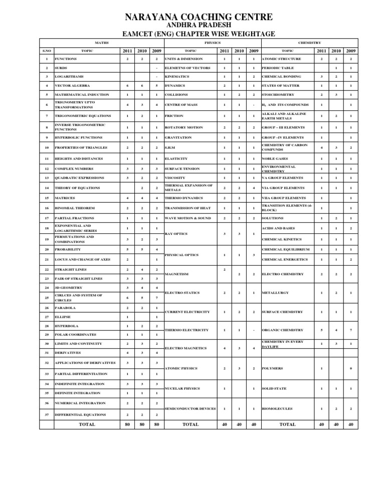 Eamcet important chapters in this article we have given the useful information for the candidates who are preparing for ap eamcet and ts eamceteamcet final schedule has released by the authorities of tsche and apsche respectively. Eamcet important chapters preparation plan for apeamcet tseamcet. Chapters with minimum 5 questions in eamcet biological classificationmorphology cell structure and function plant physiology reproduction in plants chapters with minimum 2 questions in eamcet.