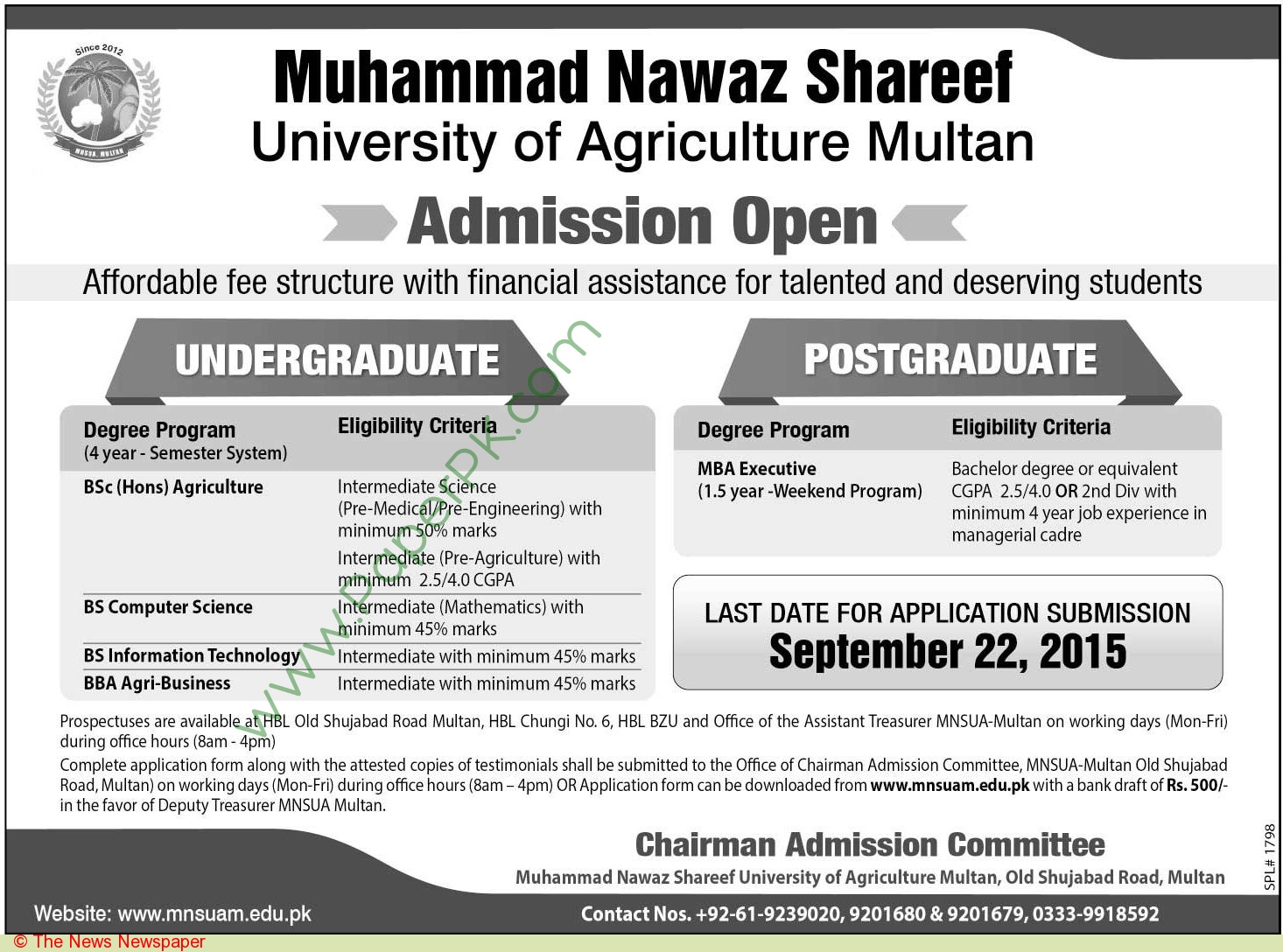 During the short period of its existence the university has made rapid progress in terms of expansion of its academic programs students enrolment physical infrastructure campus network and hiring of highly qualified and experienced academic and. Nawaz sharif agriculture university multan admissions 2020 registration online. Mns university of agriculture multan is an hec recognized higher education institution that started its academic activities in 2012.
