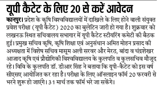The entrance test is conducted for the admission in various programmes at ug pg and research levels. Upcatet 2020 uttar pradesh combined agricultural and technology entrance test upcatet 2020 will be conducted by sardar vallabhbhai patel university of agriculture and technology meerut for admission into various undergraduates post graduate mtech mba and phd programs for the academic year 2020 21.