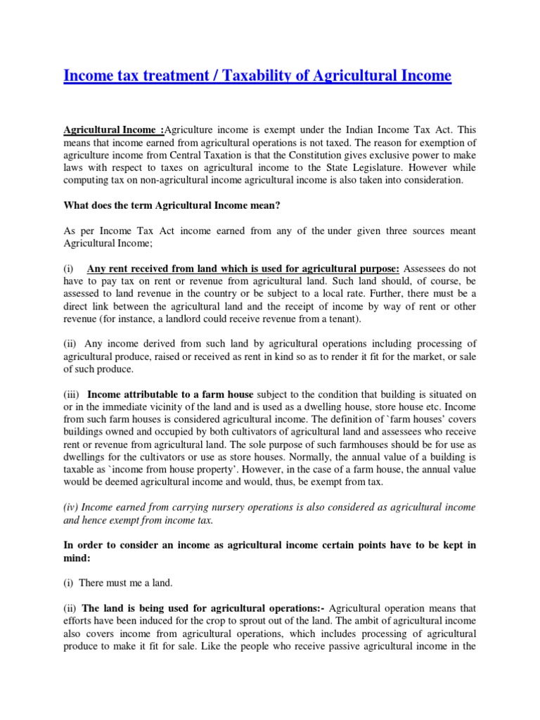 According to this section agricultural income generally means. If a farmer is generating agricultural income along with non agricultural income he will have to calculate the taxable income. Agriculture income is exempt under section 101 of the indian income tax act but while computing tax on non agricultural income agricultural income is also taken into consideration and when we compute tax taking agriculture income into consideration we pay tax on agriculture income also.
